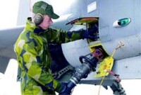 Fünf Mann und ein Techniker machen den Gripen binnen 10 Minuten flugbereit.