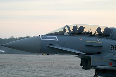 Das aufgeräumte Cockpit, das leichte Handling trotz des hohen Gewichts und die - selbst ohne Nachbrenner - immense Kraft des Eurofighter im Vergleich zum Draken sind die ersten prägenden Eindrücke für Major Six.