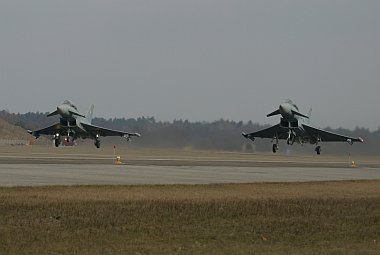 Und dort flogen den Gästen dann die Eurofighter nur so um die Ohren - trotz Temperaturen unter dem Gefrierpunkt, Raureif in der Wiese und eines eisigen Windes der sämtliche Zuseher frösteln ließ.
