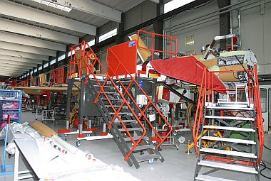 Mit einem Besuch in der Fertigungsstrasse, in der inzwischen schon nur mehr Einsitzer (GS001 bis GS006) in verschiedenen Fertigungsstadien stehen - jedes Mal ein beeindruckendes Bild wie aus dem Gewirr aus Kabeln und unzähligen Einzelteilen von Station zu Station ein fertiges Flugzeug entsteht - endet die Tour.