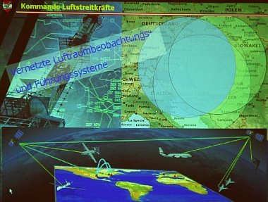 Der untere Bereich der Folie zeigt eine schematische Darstellung eines Abschusses einer ballistischen Rakete - und den dabei eingesetzten Informationsverbund zur Abwehr. Österreich verfügt über entsprechend geringe Mittel um in diesem Beispiel Reaktionen setzen zu können.