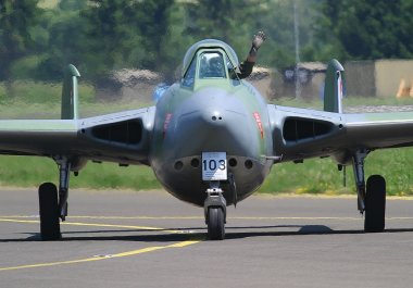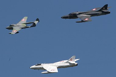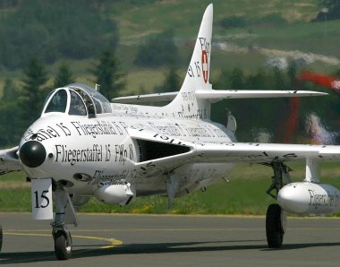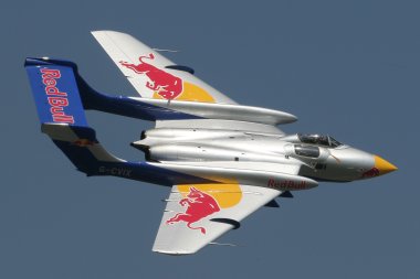 ![]() Die Tränen können einem kommen - die einzige flugfähige Sea Vixen der Welt wird toll geflogen, sieht dafür aber aus wie eine Getränkedose aus dem Werbefernsehen. Foto: Martin Rosenkranz |